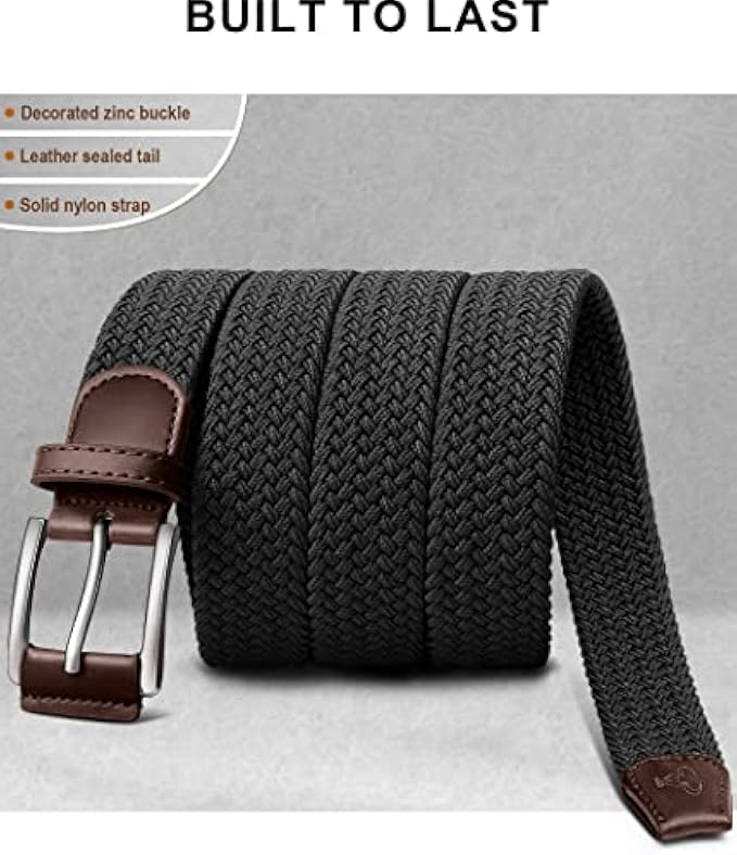 Belt for Men 2Pack,BULLIANT Mens Stretch Braided Web Belt for Casual Golf Hunting Pants Jeans,1 3/8"