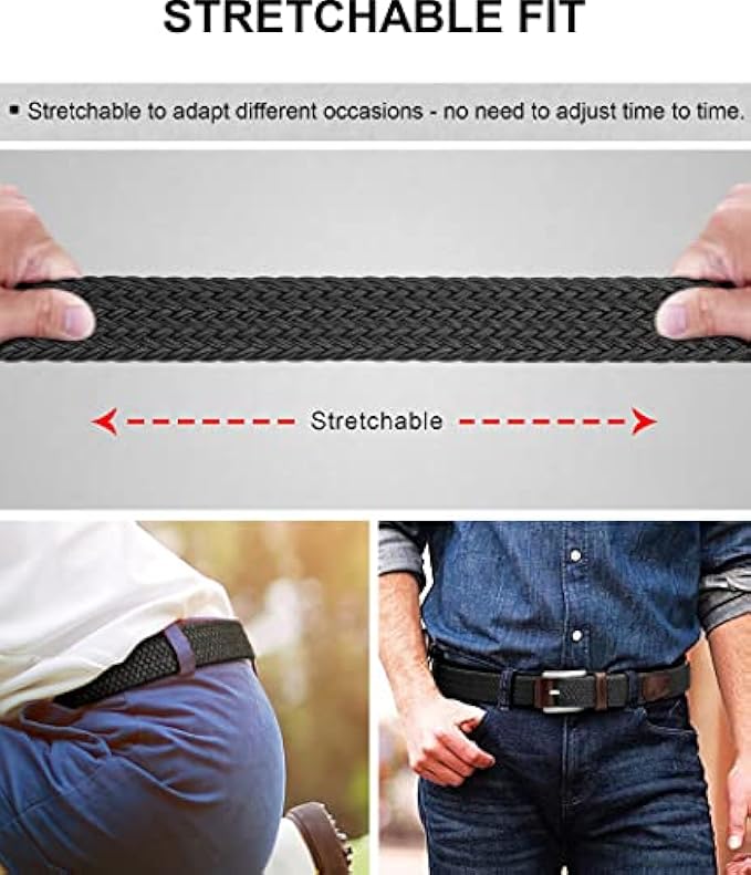 Belt for Men 2Pack,BULLIANT Mens Stretch Braided Web Belt for Casual Golf Hunting Pants Jeans,1 3/8"