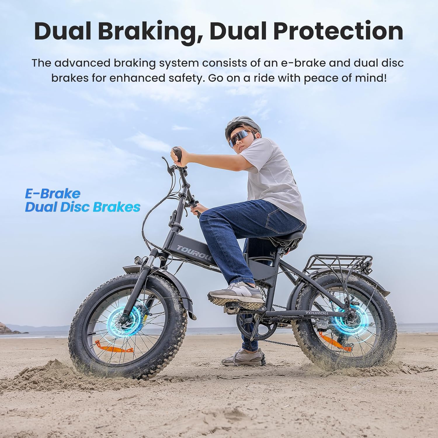 • Enhanced Comfort & Convenience -- The Touroll S1 fat e-bike is equipped with an adjustable stem for flexible customization of the handlebar height for a comfortable riding position. It has a folding mechanism for easy transport and storage. Furthermore, the S1 comes with a sturdy luggage rack to securely hold your belongings for a hassle-free cycling journey.